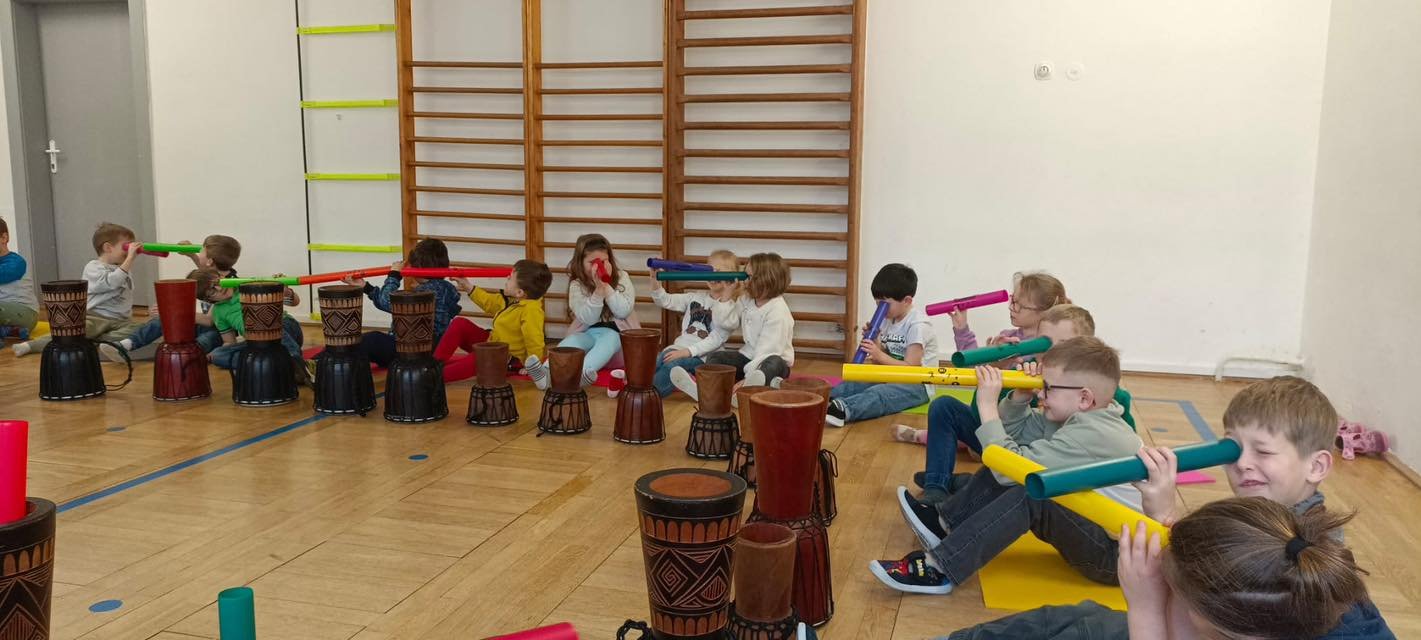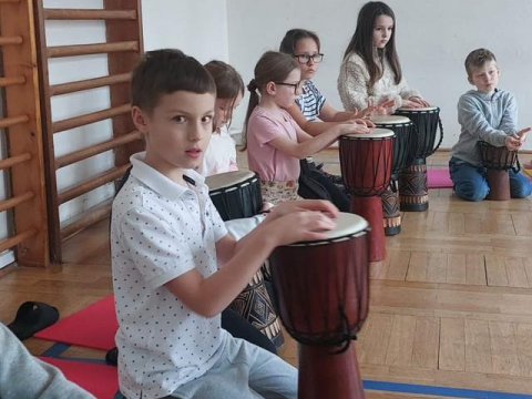 Rytmus v krvi: Menší děti rozvlnilo zážitkové bubnování na africké bubny.