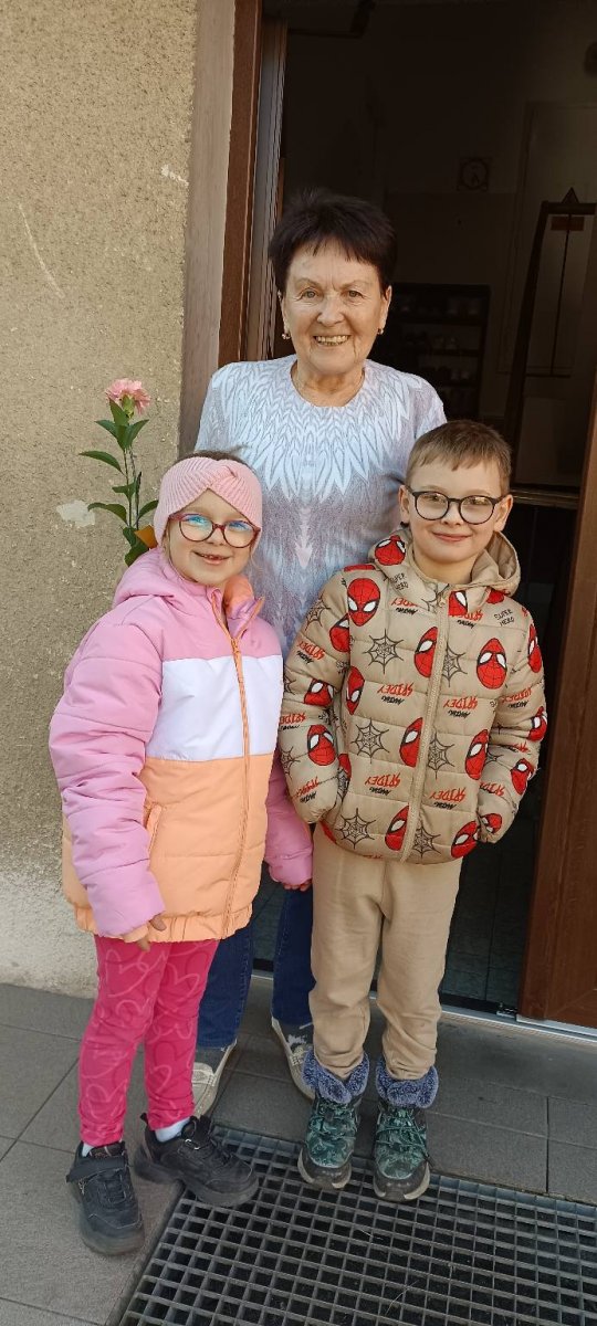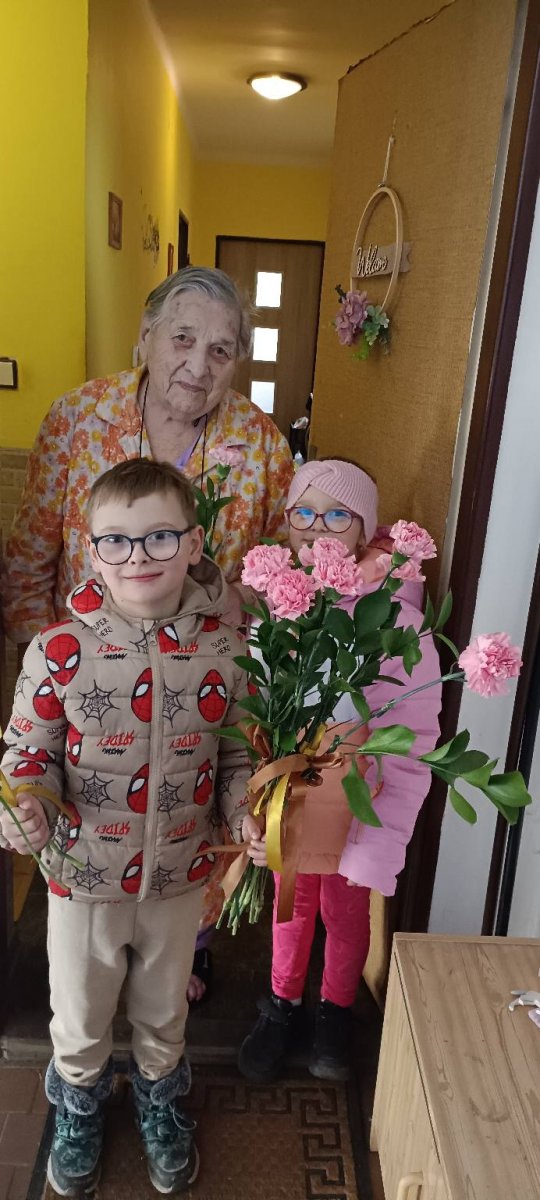 Naši nejmenší měli také tu čest navštívit „provodínské babičky“, kterým je více než 80 let. Při milém setkání dětí předaly kytičku karafiátů od OÚ Provodín. Tato dlouhodobá tradice pomáhá utužovat vztahy napříč všemi generacemi.