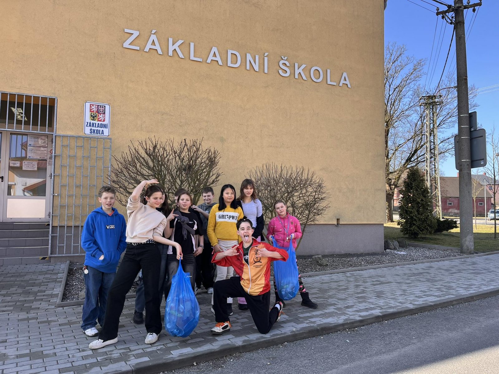 Aby bylo kolem nás na jaře krásné, okolí jsme pomohli úklidem okolí školy.