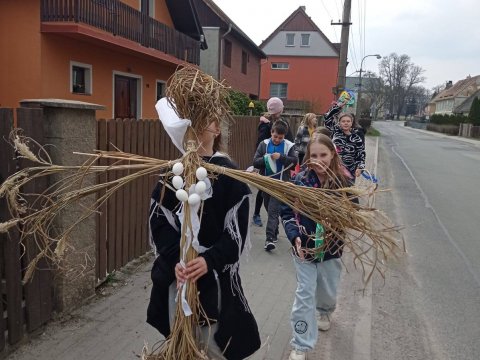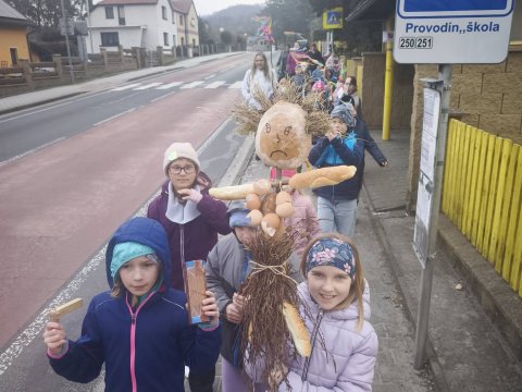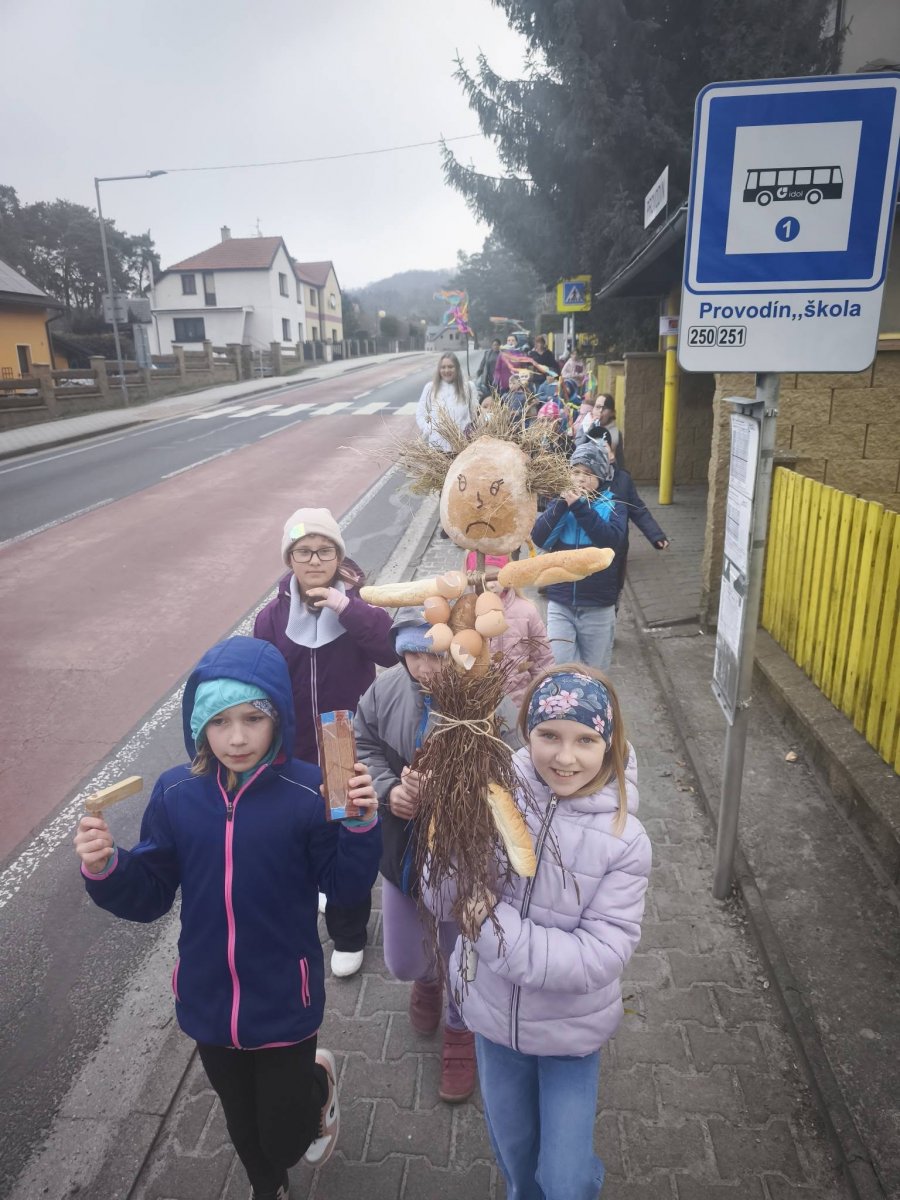 Březen, březen, za kamna vlezem…..tak toto tvrdí staré dobré přísloví, ale u nás ve škole není čas trávit čas za kamny. My jsme totiž s kamarády z provodínské školky museli přivítat jaro. Na školní zahradě jsme nejdříve ozdobili "Jarunu" a hned poté se slova ujaly naše školní sboristky a kroužek flétnistů. Hrou na harmoniku nám odpoledne zpříjemnila také paní Haštabová, které tímto moc děkujeme. Za doprovodu její harmoniky jsme si zazpívali lidové písničky, zatančili si a vyrazili na průvod obcí k potoku vyprovodit Paní Zimu. Po návratu zpět jsme si ještě ozdobili perníčkové kytičky a vyrobili jarní dekorace.