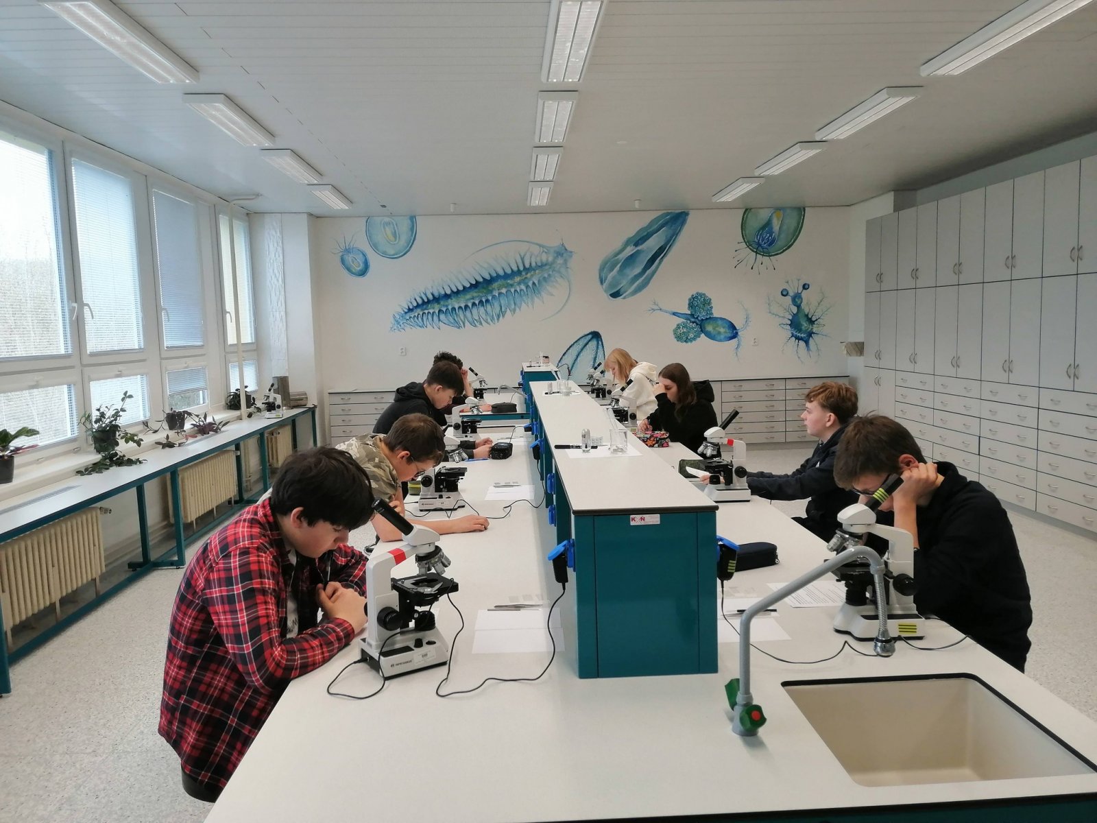 Nenudíme se ani v běžné výuce. Žáci 8. třídy se pomocí podívali dovnitř cévy a srdce 3D brýlí. Prozkoumejte všechny krvinky zblízka. Zájemci si mohli změřit krevní tlak nebo poslechnout tep. Žáci třetího ročníku v rámci pracovních činností vyzkoušeli něco opravdu praktického – připravili si vlastní oběd. Na výběr byl poctivý buřtguláš nebo špagety. Jako sladká tečka pak vznikly voňavé banánové muffiny. V rámci tělesné výchovy jsme jezdili bruslit do Zahrádka, také stále plaveme. A v rámci hodin češtiny u šesťáků se praktickým způsobem řešila otázka existence černé soli. Šesťáci měli totiž za úkol připravit zdravou svačinku bez použití elektřiny. Naučili se tak pracovat s pracovním postupem, řešili obtížnost a čas přípravy. Největší úspěch sklidila mrkvovo-celerová pomazánka dvojIce Amálka K. a Laura V. Kuchaři z kroužku vaření připravili lasagne, smetanovou pochoutku a sušenky Cottage. Jestřebští cukráři se vypravili do Itálie za tradiční velikonoční bábovkou ve tvaru holubice - Colomba di Pasqua, do Německa s Kásekuchen muffiny a až do dalekého Japonska s Matcha rollcake.