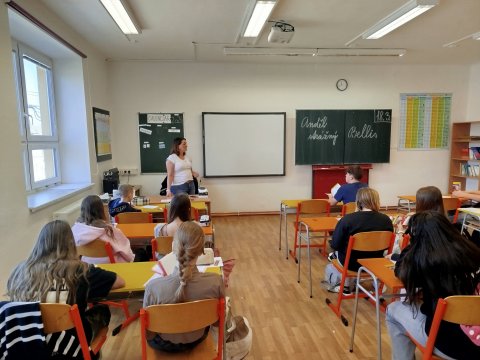 Přivítali jsme naši bývalou žákyni Marii N., která nám přišla představit studium na SŠ, obor praktická sestra. Žáci si už dokážou představit náplň denní směny zdravotní sestřičky a zároveň využili odborných znalostí naší absolventky k pokládání rozmanitých dotazů ohledně svého zdravotního stavu. Firmu "Anděl strážný" přišla osmákům a sedmákům představit koordinátorku Kateřina HLOŽNÁ, DiS., která ráda pomáhá. Přiblížila žáky i svůj nelehký osobní příběh a upozornila tak na prevenci rakoviny.