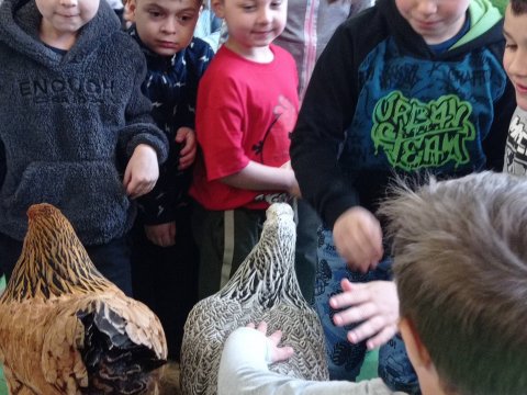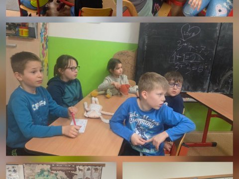 Celý březen jsme se věnovali vodě. Čtvrťáci prováděli různé pokusy a objevovali její vlastnosti. Také k nám zavítal Adélčin dvoreček se svým "Velikonočním turné" a přivezl s sebou spoustu roztomilých zvířecích návštěvníků.