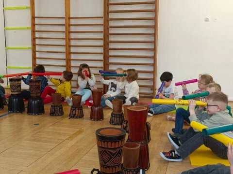 Rytmus v krvi: Menší děti rozvlnilo zážitkové bubnování na africké bubny.