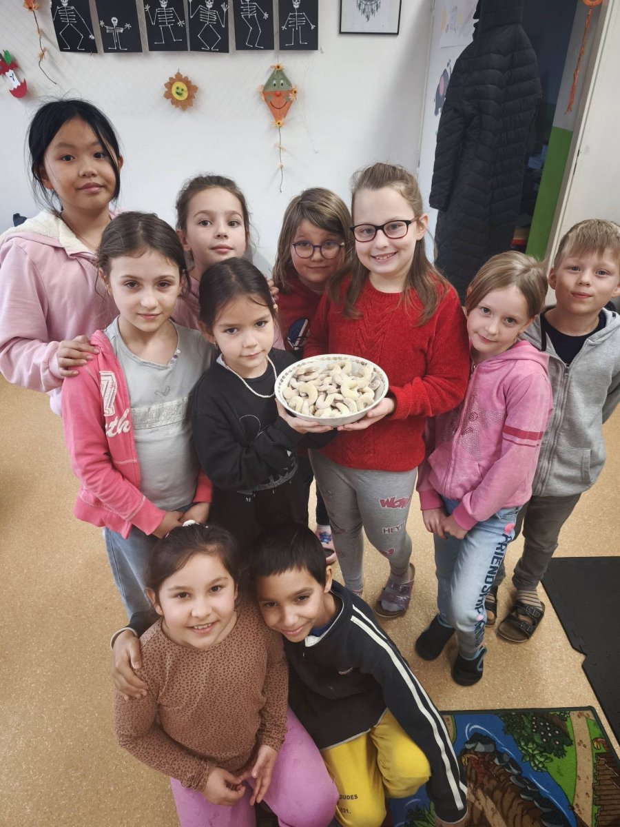 Listopad je sice podzimní měsíc, ale už má vánoční nádech. Žáci poctivě celý měsíc vyráběli ozdoby na třídní stromeček a drobnosti na vánoční trh, který se konal první adventní neděli (30.11.). Ten jsme si všichni moc užili a děkujeme návštěvníkům za podporu. Snad jsme všem udělali radost předvánočním koncertem v kostele sv. Ondřeje. Děti v družinkách vyráběly i pro charitativní účely. Také se účastní sbírek Šance a všechny dárečky od nich poputují do Plzně na onkologické centrum. Také půjdeme podpořit místní útulek Dogsy, kde máme se sborem a flétničkami připravené vystoupení na akci Stromeček pro pejsky (20.12.).