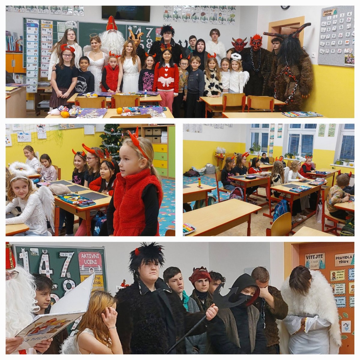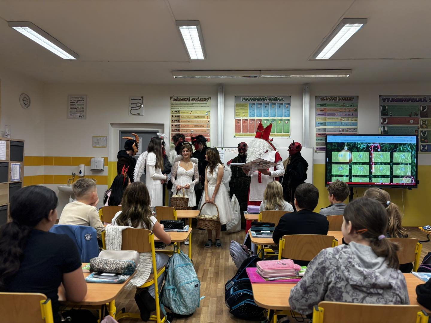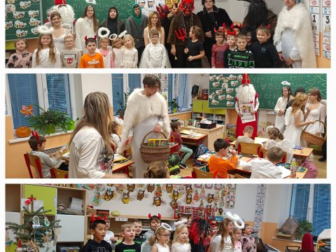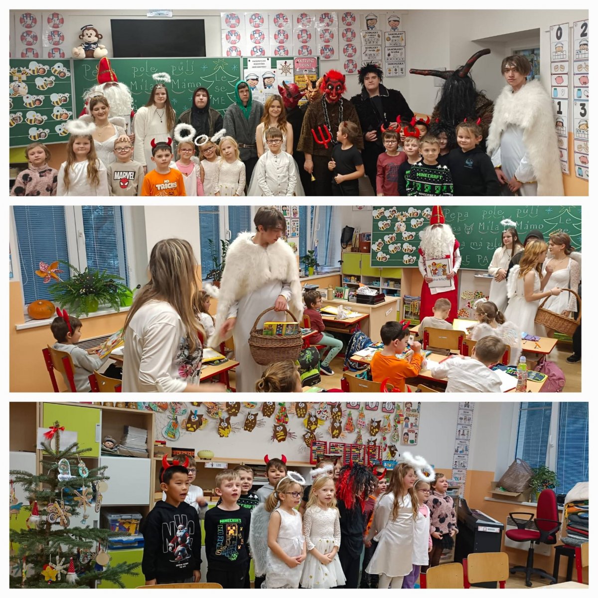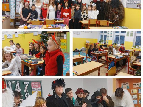 V listopadu jsme stihli halloweenské učení se strašidelným odpolednem v družinkách, navštívili nás odbornice ze SZÚ s projektem Zdravíkova stezka (ZŠ Provodín), Tonda Obal (ten nás učil odpady), Maják s preventivními programy (ZŠ Jestřebí), Flamenca paní Legezové, spolumajitel paní deNatura Tomáš Karásek jaderek, ice. firmy a ice. Hrdina, který žáky naučil hrát Špičkový kvíz. Hned zkraje prosince nás navštívila velká čertovská a andělská návštěva v čele s Mikulášem. Děti si nadílku moc užily a za básničky si vysloužily balíčky (hrazené z fondu SRPŠ). Mikuláš nechal dárečky iv družinách, kde si děti mohly pořádně zařádit. Do vánočních prázdnin nás ještě navštivte lektorky se zážitkovým bubnem a programem Už ty pilky dořezaly, kde se propojí hudební výchova s přípravou hudebních nástrojů. Přijede i herec Ruda Hancvencl, který zahraje divadlo pro děti s vánoční tématikou v kostele sv. Ondřeje.
