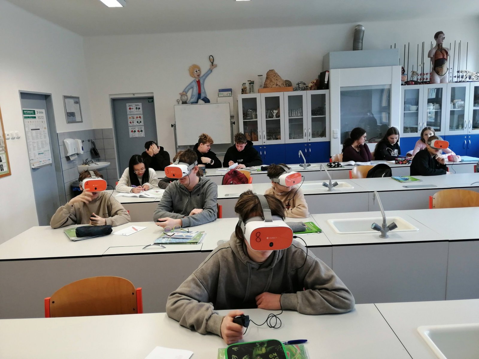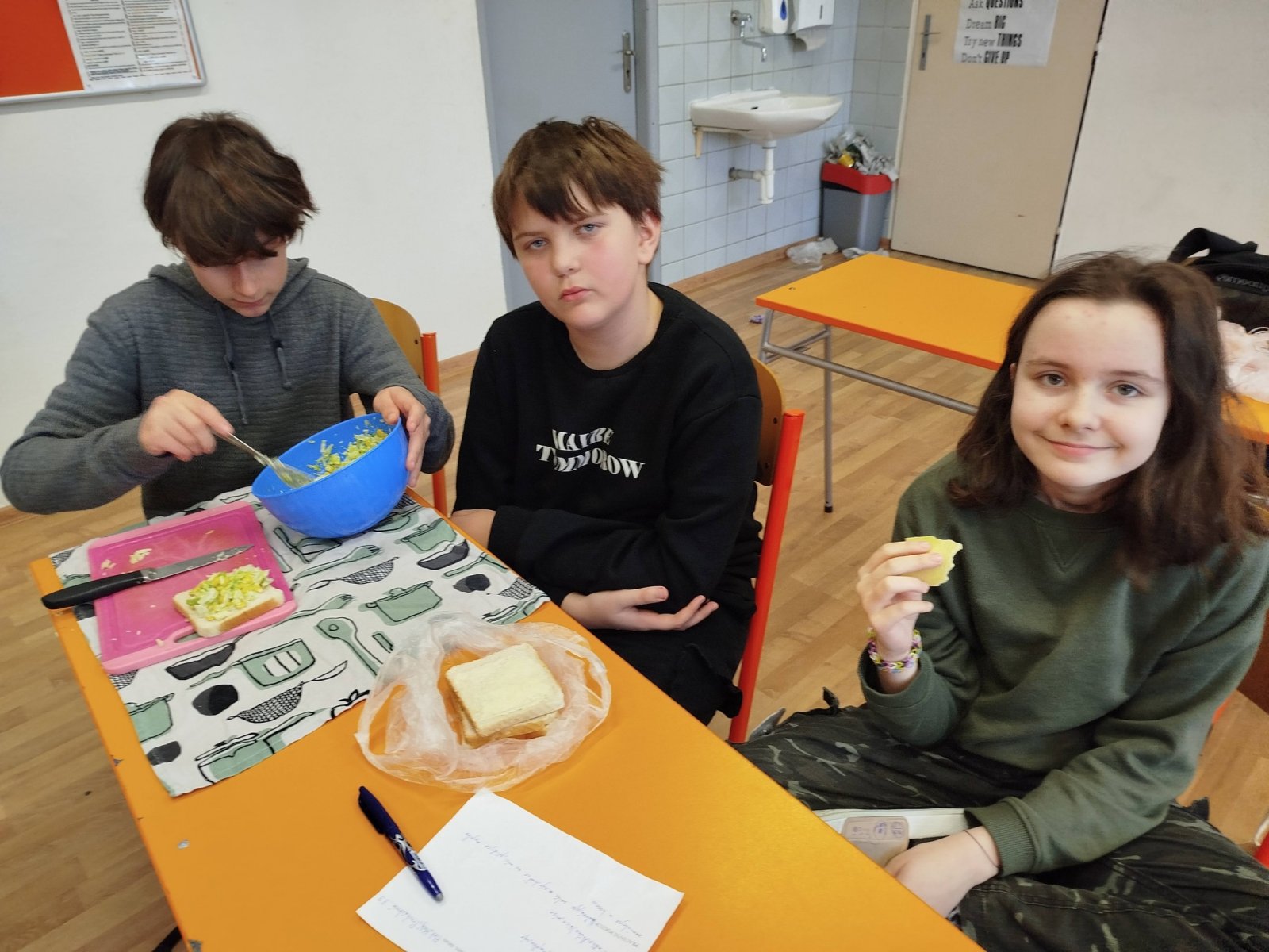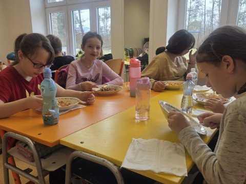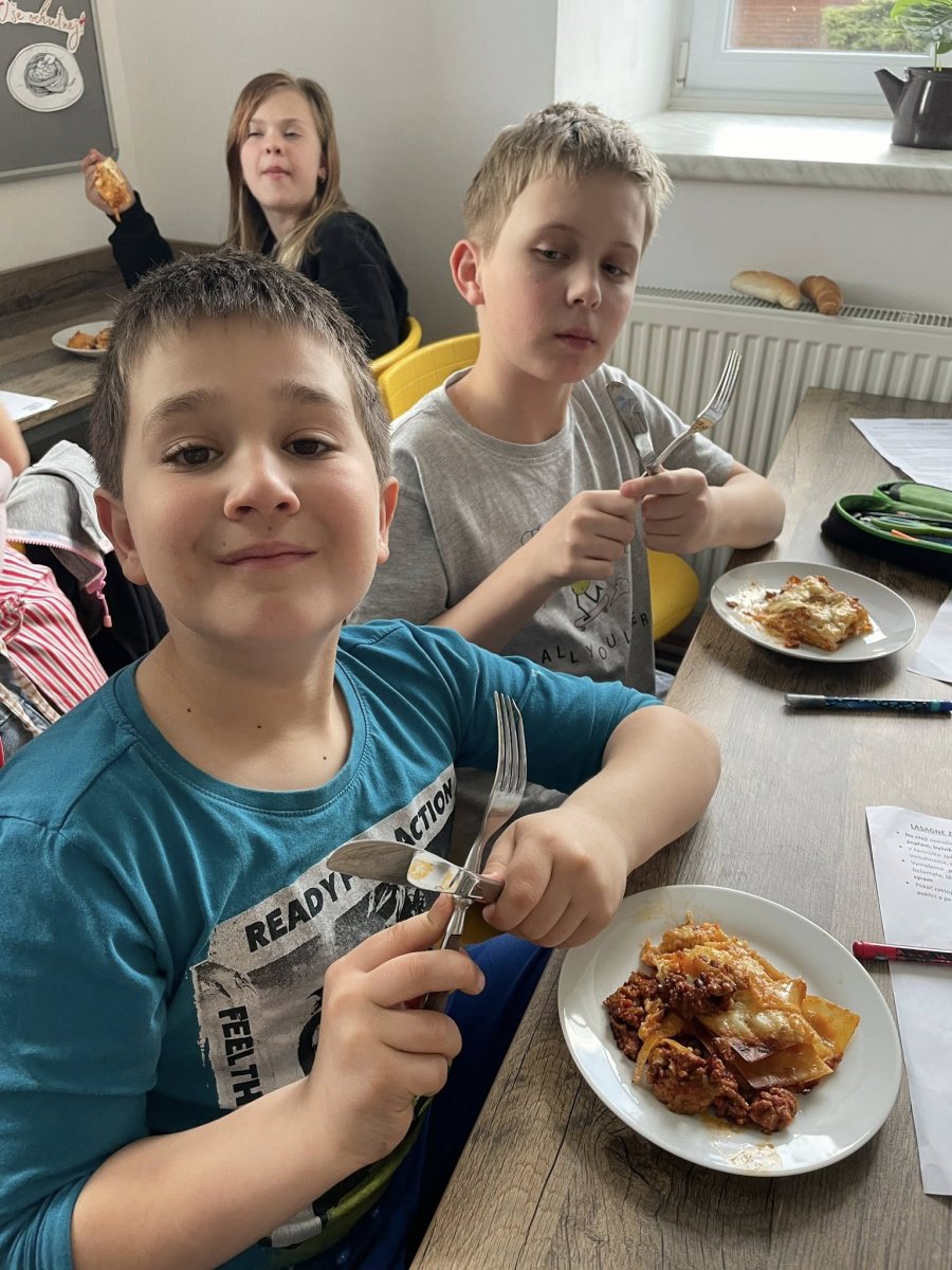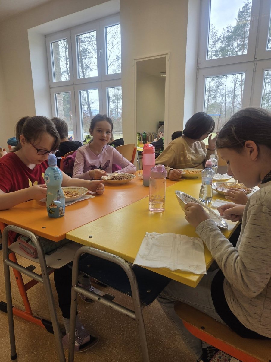Nenudíme se ani v běžné výuce. Žáci 8. třídy se pomocí podívali dovnitř cévy a srdce 3D brýlí. Prozkoumejte všechny krvinky zblízka. Zájemci si mohli změřit krevní tlak nebo poslechnout tep. Žáci třetího ročníku v rámci pracovních činností vyzkoušeli něco opravdu praktického – připravili si vlastní oběd. Na výběr byl poctivý buřtguláš nebo špagety. Jako sladká tečka pak vznikly voňavé banánové muffiny. V rámci tělesné výchovy jsme jezdili bruslit do Zahrádka, také stále plaveme. A v rámci hodin češtiny u šesťáků se praktickým způsobem řešila otázka existence černé soli. Šesťáci měli totiž za úkol připravit zdravou svačinku bez použití elektřiny. Naučili se tak pracovat s pracovním postupem, řešili obtížnost a čas přípravy. Největší úspěch sklidila mrkvovo-celerová pomazánka dvojIce Amálka K. a Laura V. Kuchaři z kroužku vaření připravili lasagne, smetanovou pochoutku a sušenky Cottage. Jestřebští cukráři se vypravili do Itálie za tradiční velikonoční bábovkou ve tvaru holubice - Colomba di Pasqua, do Německa s Kásekuchen muffiny a až do dalekého Japonska s Matcha rollcake.