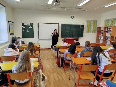 Přivítali jsme naši bývalou žákyni Marii N., která nám přišla představit studium na SŠ, obor praktická sestra. Žáci si už dokážou představit náplň denní směny zdravotní sestřičky a zároveň využili odborných znalostí naší absolventky k pokládání rozmanitých dotazů ohledně svého zdravotního stavu. Firmu "Anděl strážný" přišla osmákům a sedmákům představit koordinátorku Kateřina HLOŽNÁ, DiS., která ráda pomáhá. Přiblížila žáky i svůj nelehký osobní příběh a upozornila tak na prevenci rakoviny.