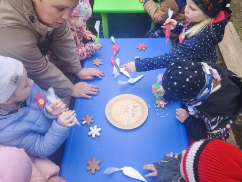 Naši nejmenší měli také tu čest navštívit „provodínské babičky“, kterým je více než 80 let. Při milém setkání dětí předaly kytičku karafiátů od OÚ Provodín. Tato dlouhodobá tradice pomáhá utužovat vztahy napříč všemi generacemi.